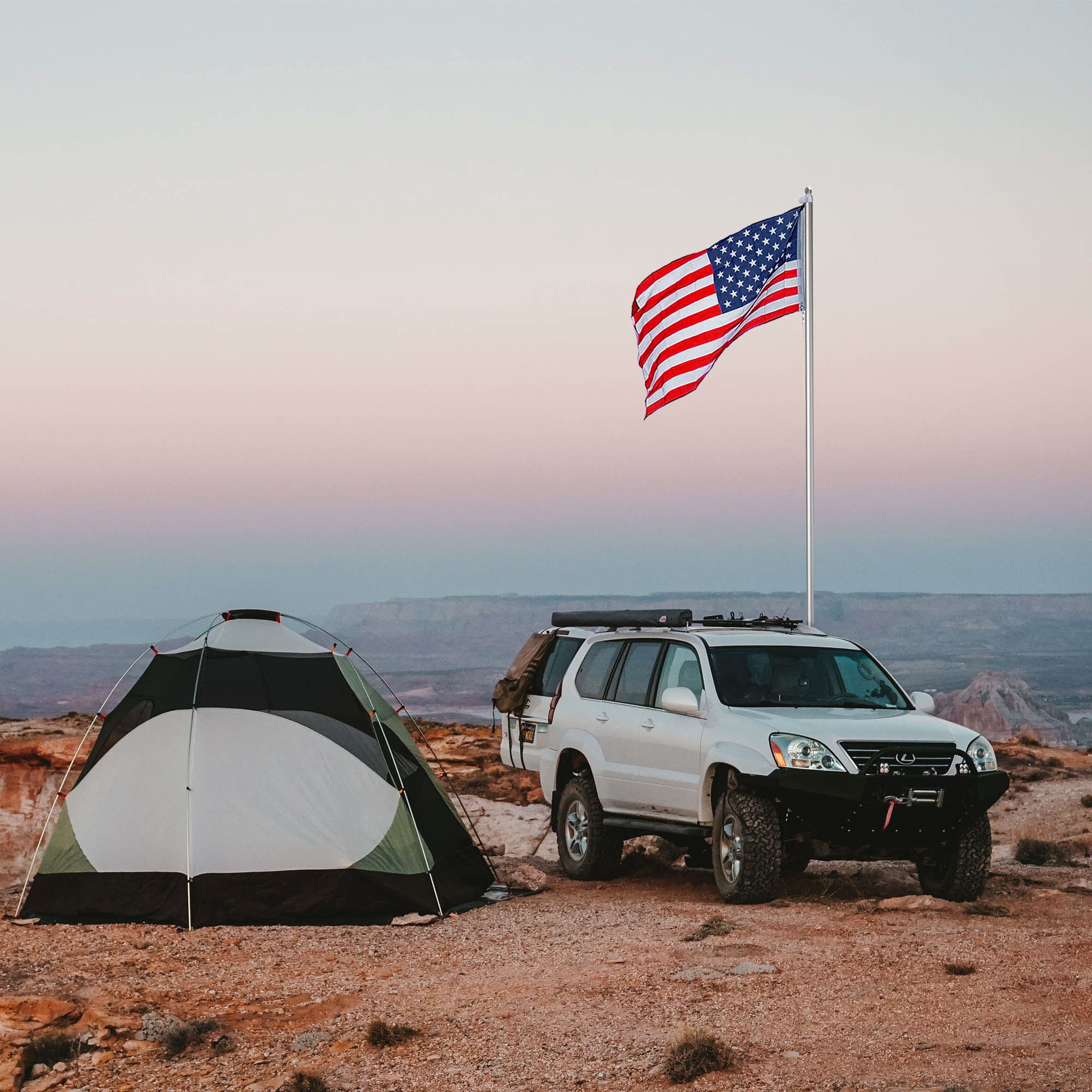 - Freely Fly Your American Pride - show your independence; democracy and strong patriotic spirit and be proud of the Great American; Ideal for front yard; garden; patio as well as commercial use like company; government buildings; railway station; museum; square; shopping mall; to decorate your places and publicize your proud to the country; Also suitable for holding cell booster antenna at the top & for tailgating/camping decoration