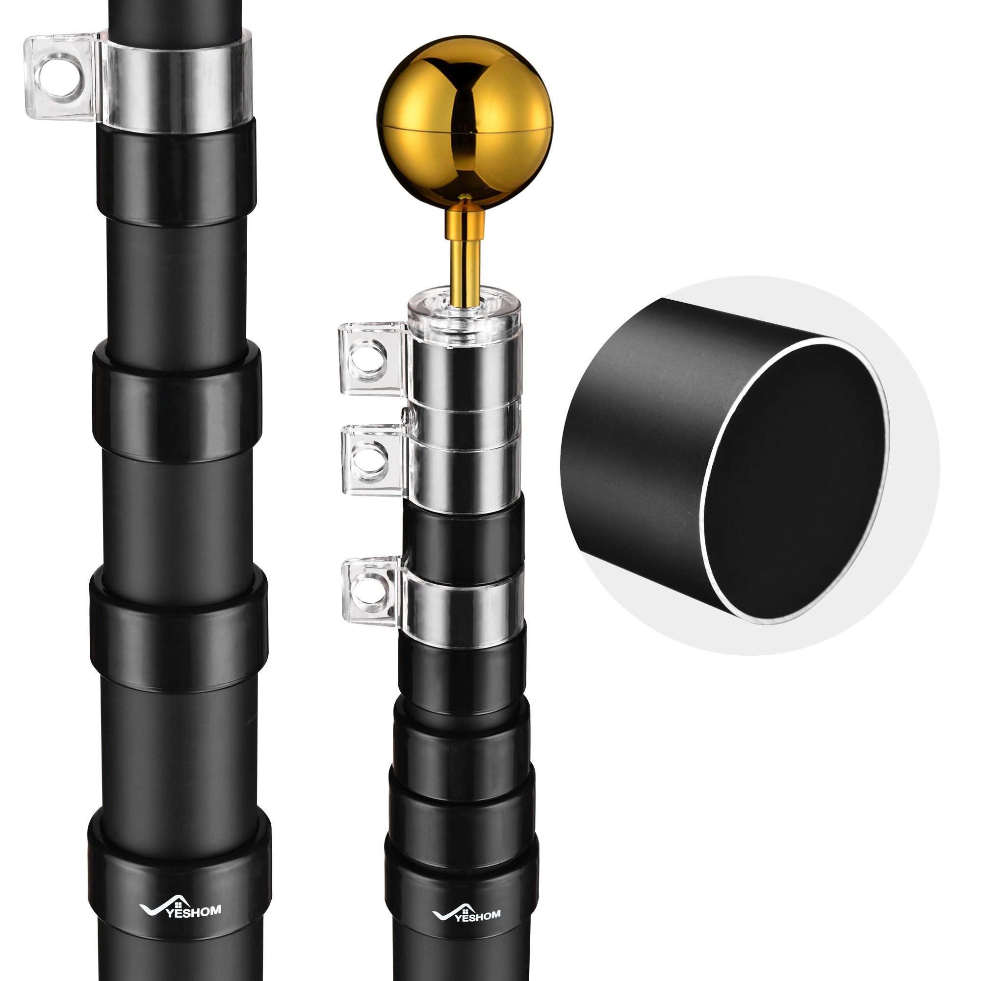 - Aluminum Telescoping Flagpole Kit - Includes a 30 ft aluminum telescopic flag pole; golden top finial; US flag & PVC sleeve; offers you a complete kit to install the flag pole & show your patriotic spirit; Flag pole features classical black color for a distinguished look to decorate your place