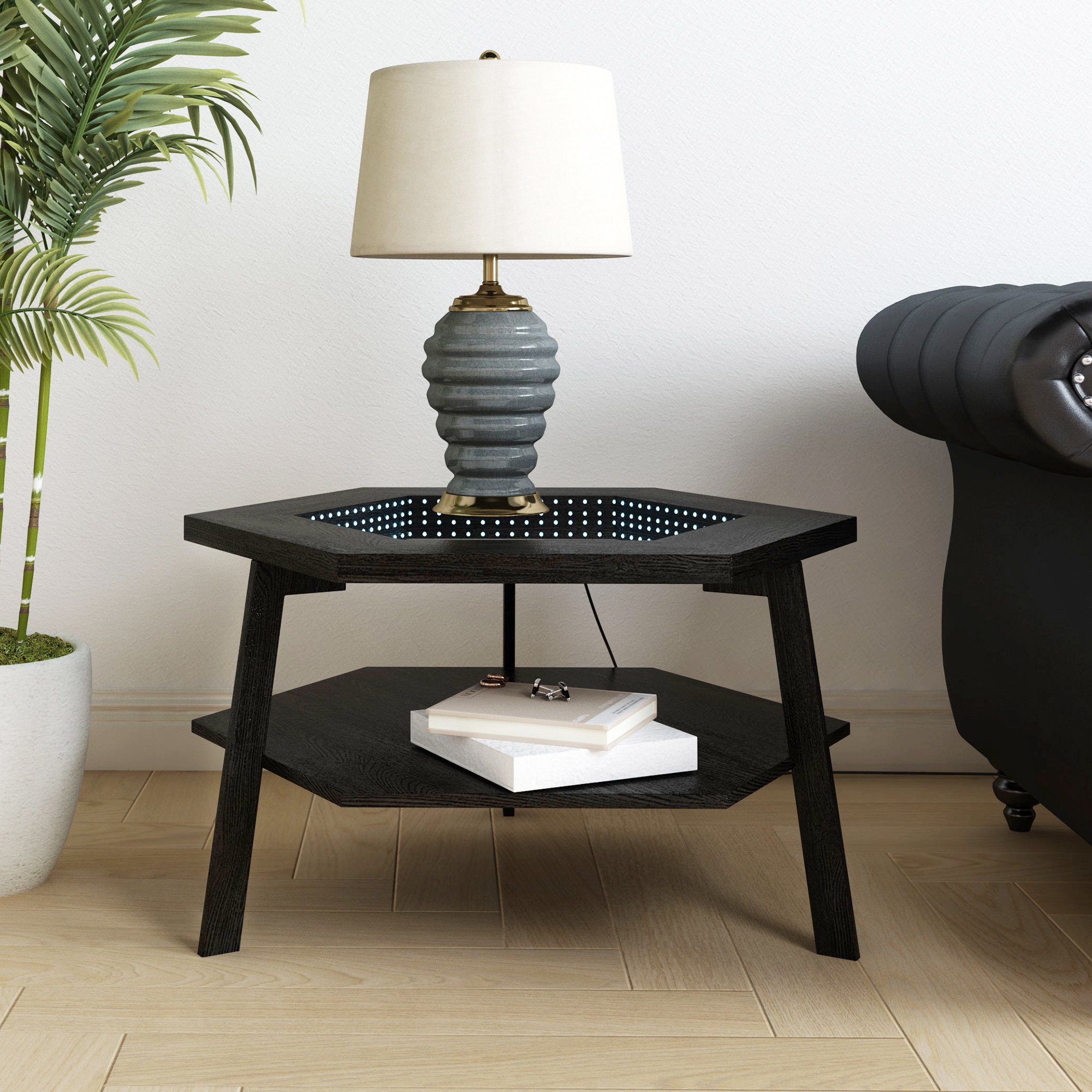 The unique hexagonal coffee table brings casual elegance to any room with a classic, contemporary design. With 16-color LED lights and Bluetooth speakers, it provides a charming atmosphere for your home. Top with colorful flowers, glowing candles, or a stack of books for a decorative touch to a chic living room, balcony, or luxurious master bedroom.